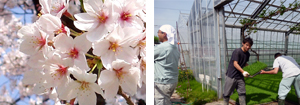 元気な苗を育てる育苗箱に芽出しした種をまき、ビニールハウス内で育てます。林農産では約1万3千枚もの育苗箱を使用します。苗は子供と同様です。十分に注意を払いながら愛情を持って育て 、ずんぐりした逞しく元気な苗をつくります。 |